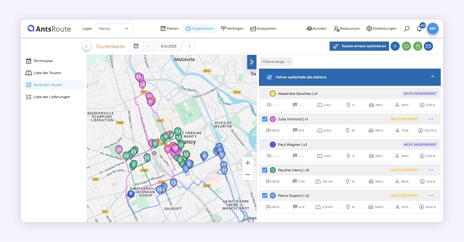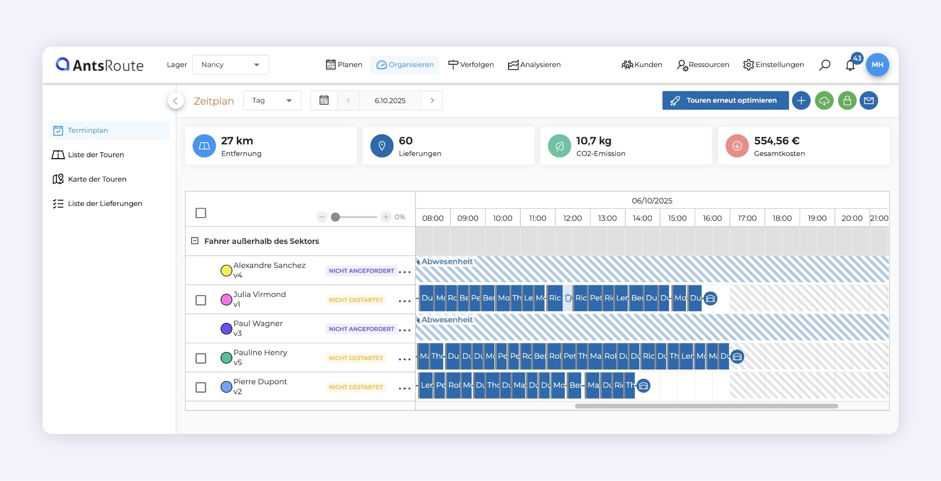Sie müssen nicht mehr an Zeitplänen basteln. Mit AntsRoute steuern Sie.