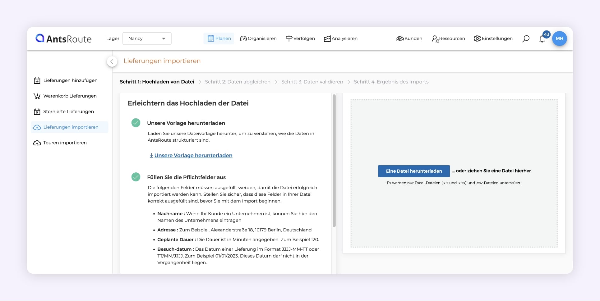 • AntsRoute bietet mehrere Planungsmodi. Aber warum sollten Sie den Excel-Import verwenden?