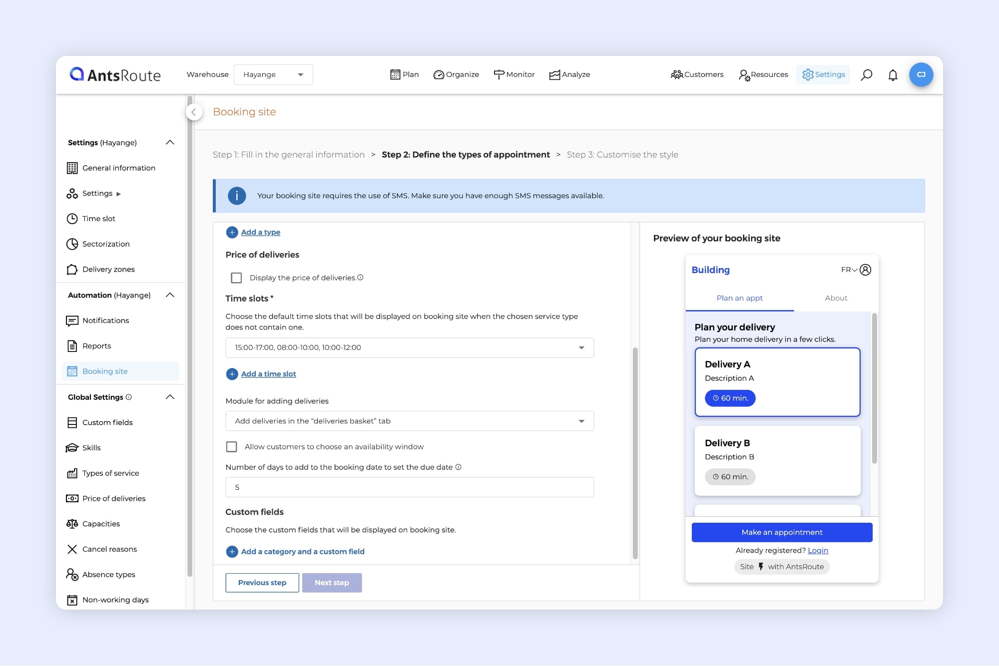 - If you don’t allow customers to choose an availability window, it’s less attractive for the end customer but more beneficial for your business thanks to greater flexibility that enables finer route optimization (higher fill rates, shorter distances, deadline-based prioritization).
