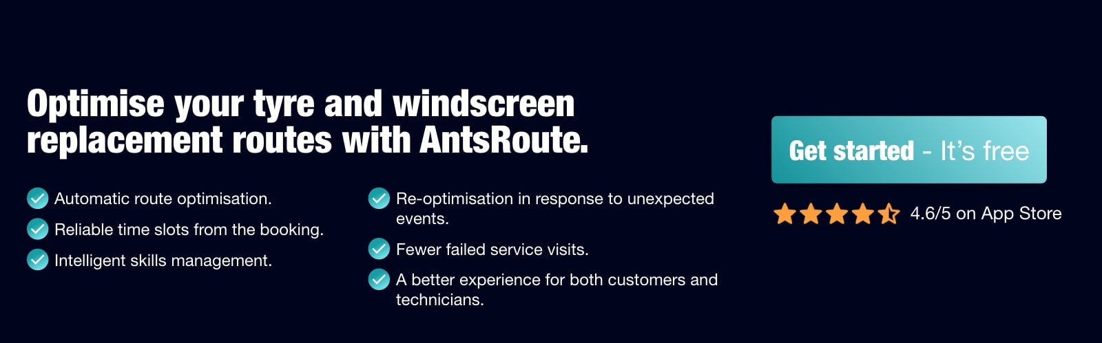 At-home tyre and automotive glass replacement is no longer just an alternative to the traditional garage. It has become the standard for a demanding customer base that is primarily buying peace of mind and time. By adopting AntsRoute, you’re not just reducing mileage: you’re giving your technicians breathing room, securing your margins, and delivering a customer experience worthy of e-commerce leaders.