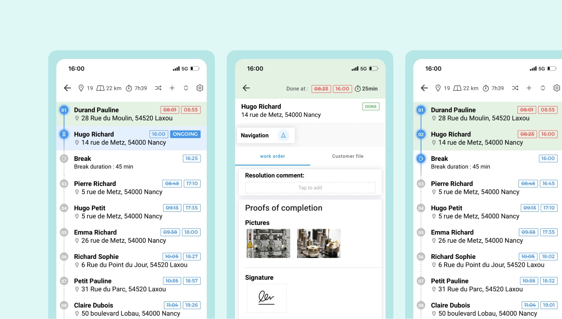 No more calls asking, “Where are you up to?”. The planner no longer works blind: they can keep customers informed, adjust a route, or slot in a quick job during a gap.