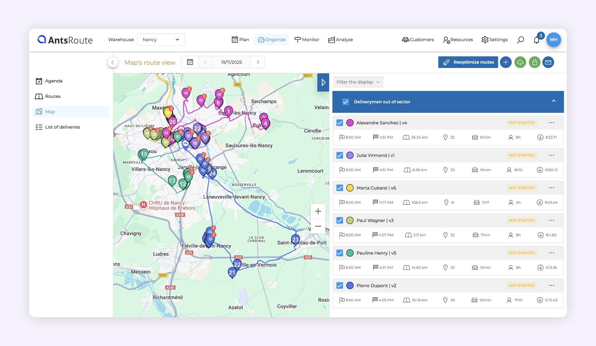 This is where technology once again comes into play, more specifically, our AntsRoute software. It helps rebalance workloads, avoid duplicate trips, and automatically redistribute routes in the event of unforeseen circumstances. A driver off sick? The software adjusts the routes. An urgent customer request? The route is recalculated instantly, without having to start everything from scratch.