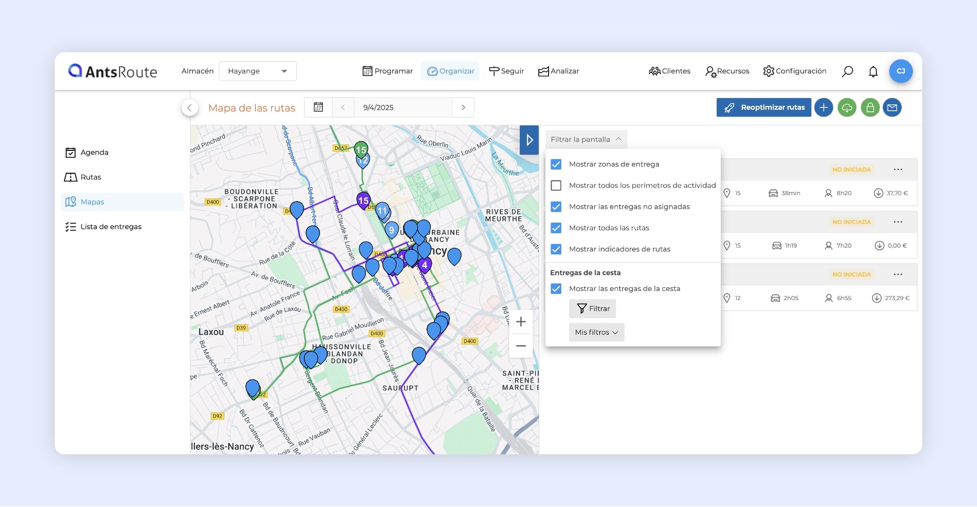 Ahora, AntsRoute le permite refinar la visualización con nuevos filtros avanzados, directamente desde el panel lateral.