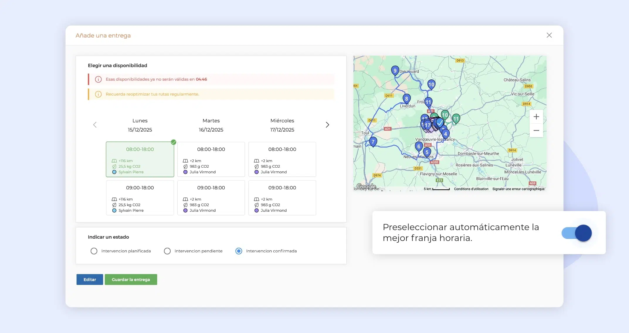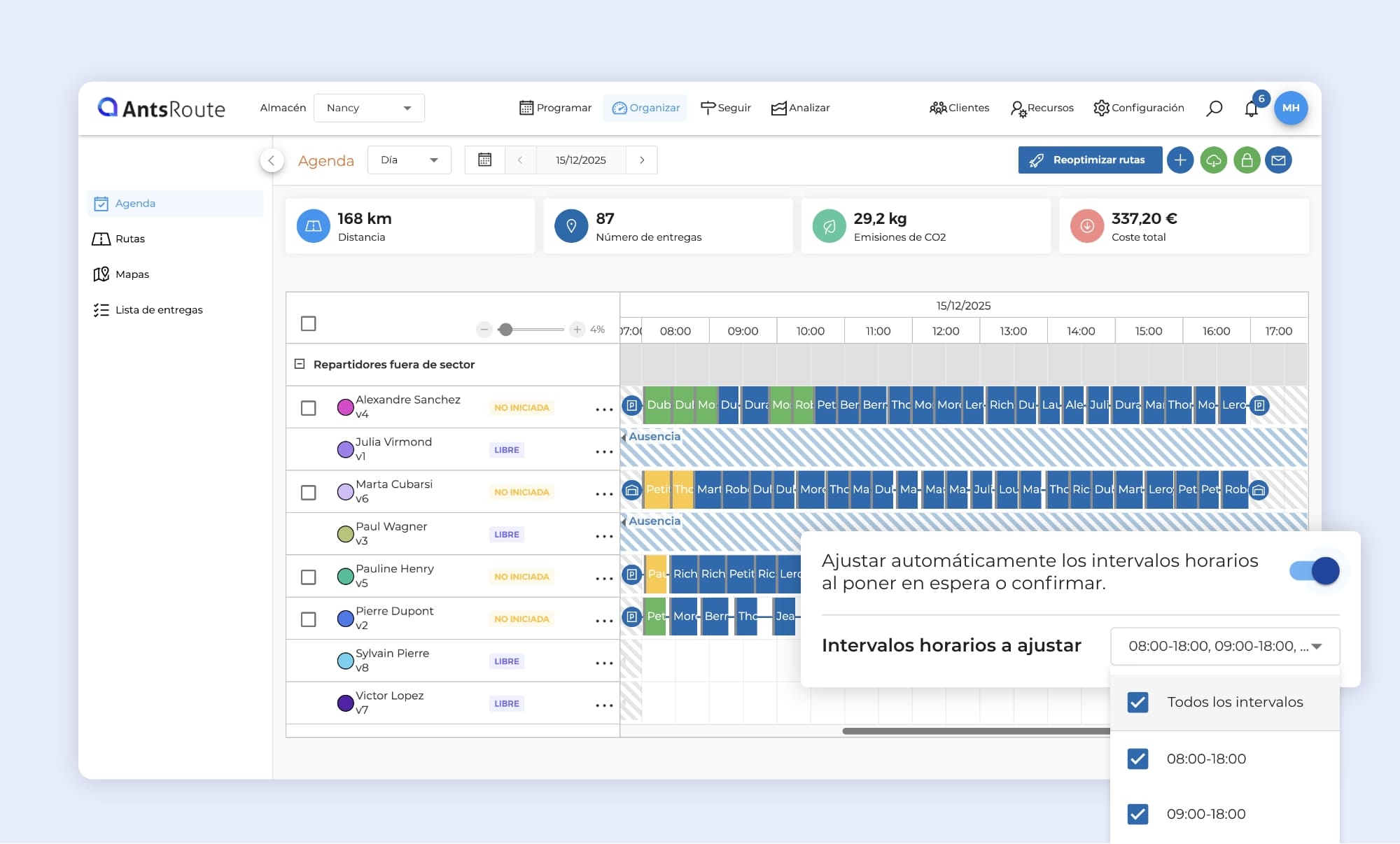 En pocas palabras, AntsRoute te propone directamente la franja horaria más optimizada para tus rutas.