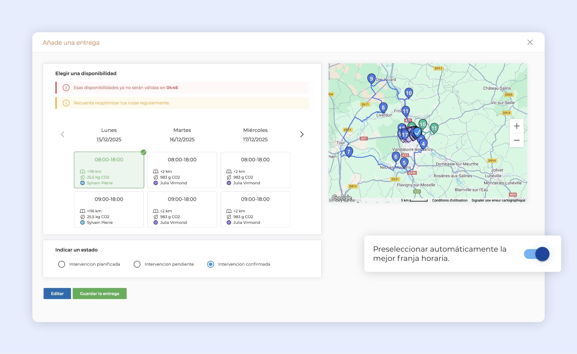 Preselección automática de una franja horaria de entrega en AntsRoute.