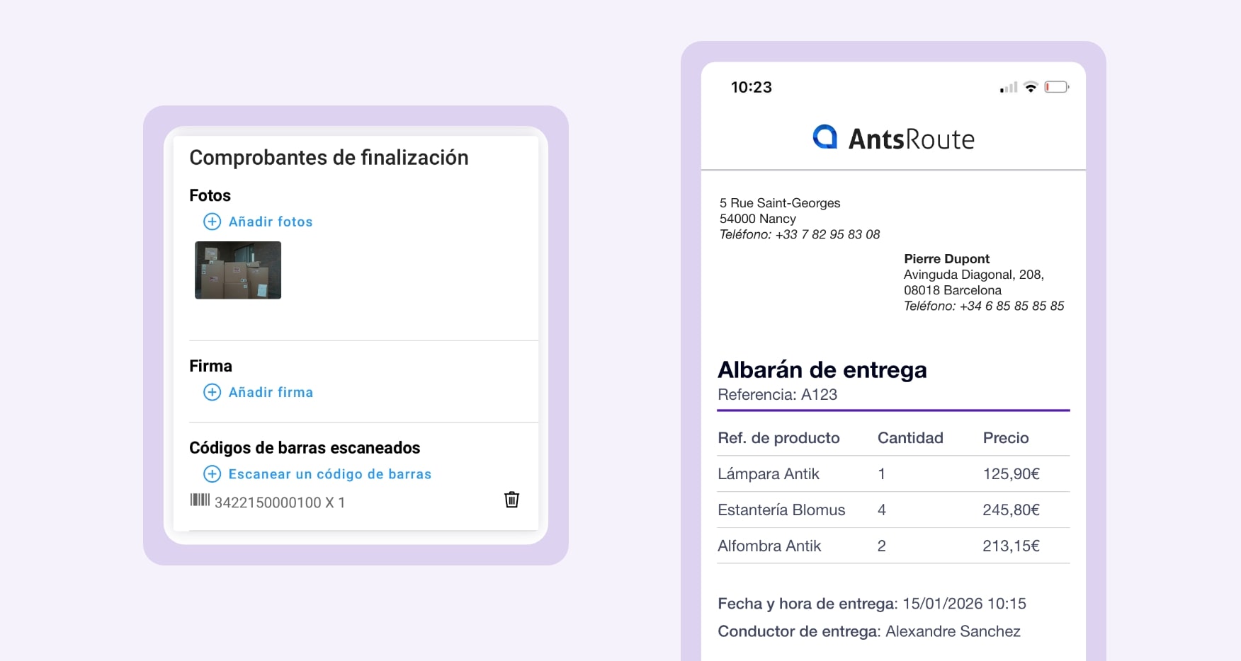 - Digitalizado e integrado en las herramientas de negocio, este documento de entrega se convierte en una fuente de datos explotable para garantizar la fiabilidad de las operaciones y mejorar el rendimiento global con AntsRoute.
