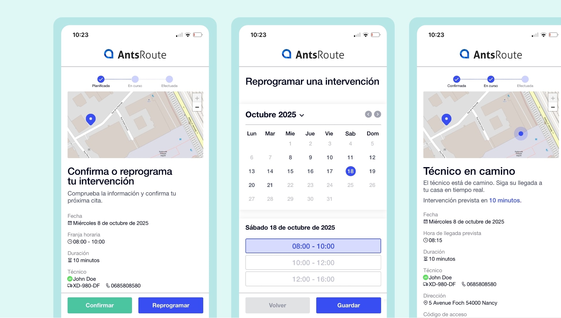 Un cliente ausente = una intervención perdida. Y un técnico que se ha desplazado para nada. AntsRoute lo evita: