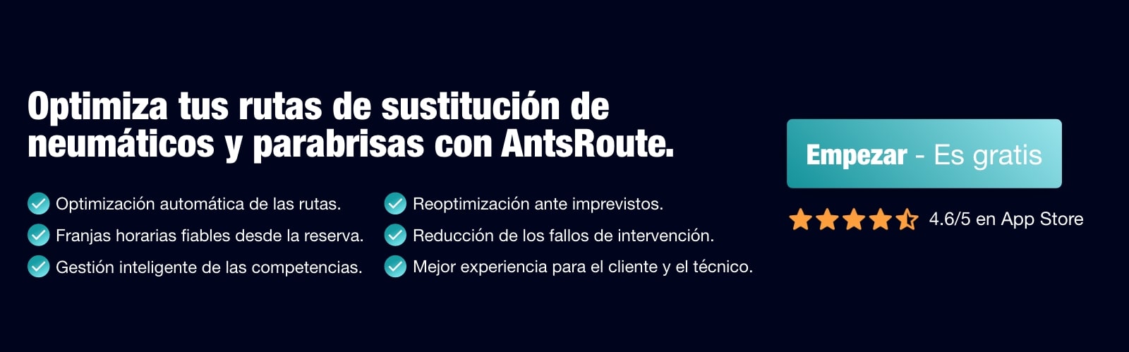 La sustitución de neumáticos y lunas a domicilio ya no es una simple alternativa al taller tradicional: se ha convertido en el estándar para una clientela exigente, que compra ante todo tranquilidad y tiempo. Al adoptar AntsRoute, no solo reduces los kilómetros recorridos: das más respiro a tus técnicos, aseguras tus márgenes y ofreces una experiencia de cliente a la altura de los gigantes del e-commerce.