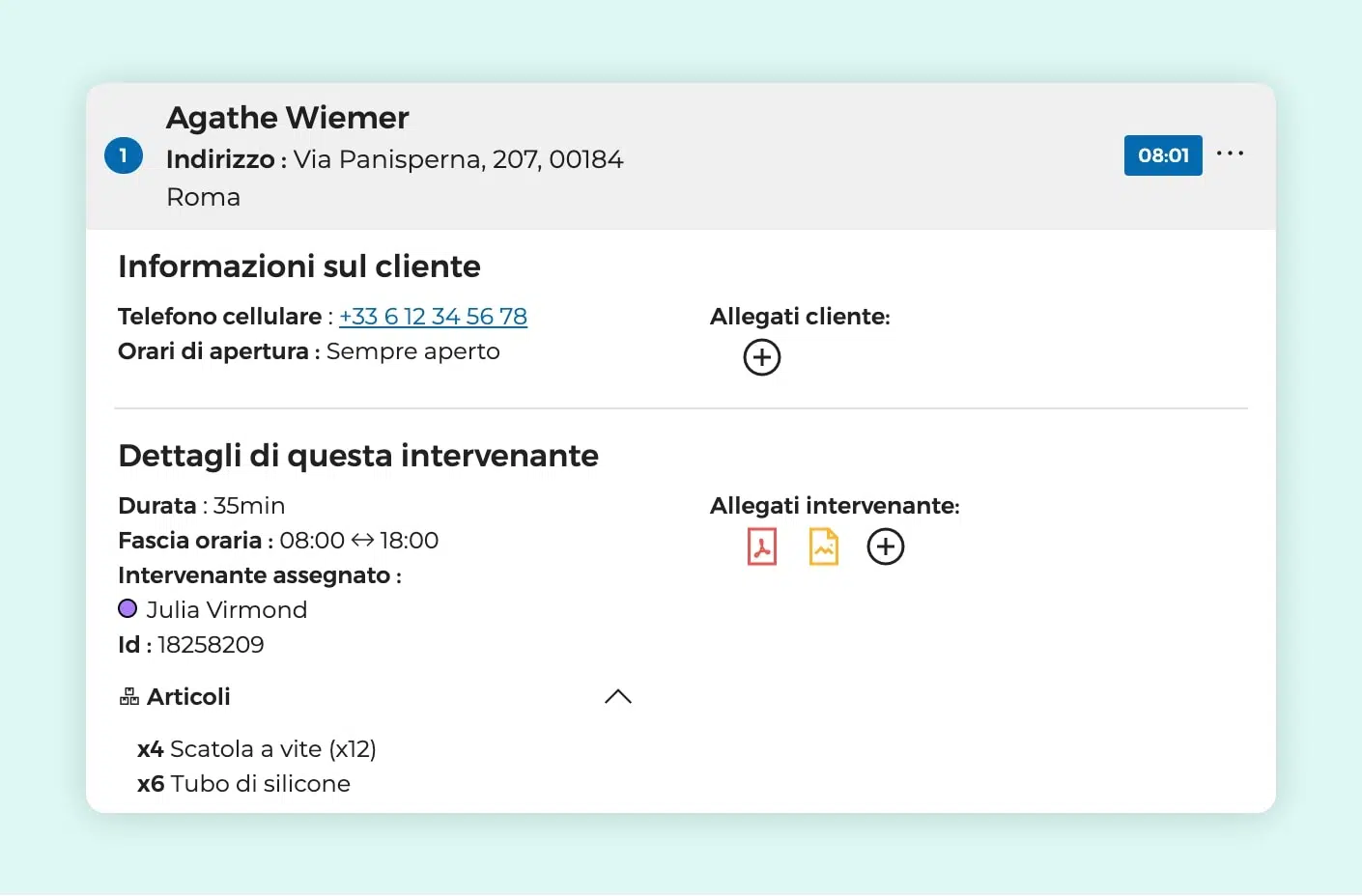 La centralizzazione di tali dati nel software di gestione degli interventi è inoltre un vantaggio innegabile per i tecnici. Permette loro di accedere a tutte le informazioni necessarie a un intervento futuro. Aumenta così considerevolmente la loro efficacia.