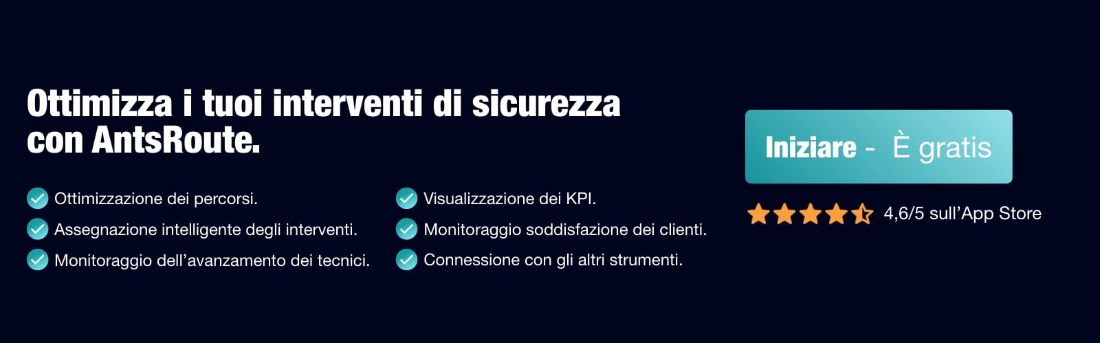 ☝️ In pratica, le tue squadre trascorrono più tempo al volante che a garantire la sicurezza dei clienti. Ogni minuto perso sulla strada equivale a un intervento in meno a fine giornata.