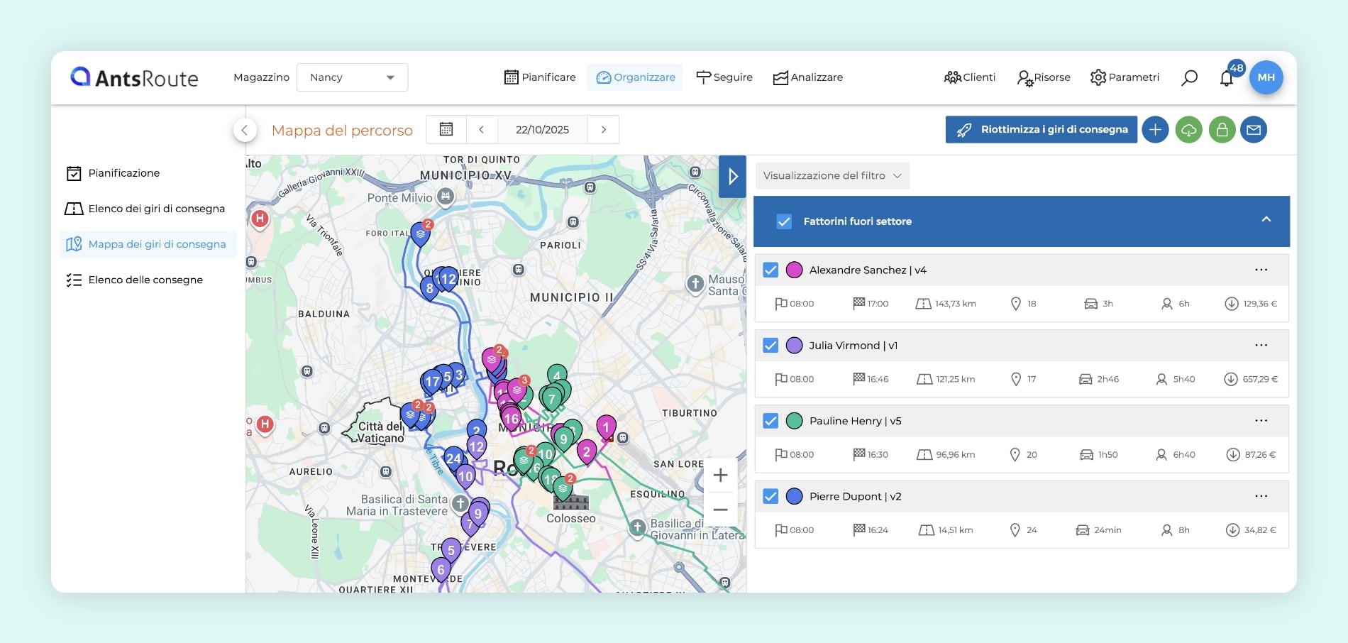 Il software di ottimizzazione dei percorsi AntsRoute.