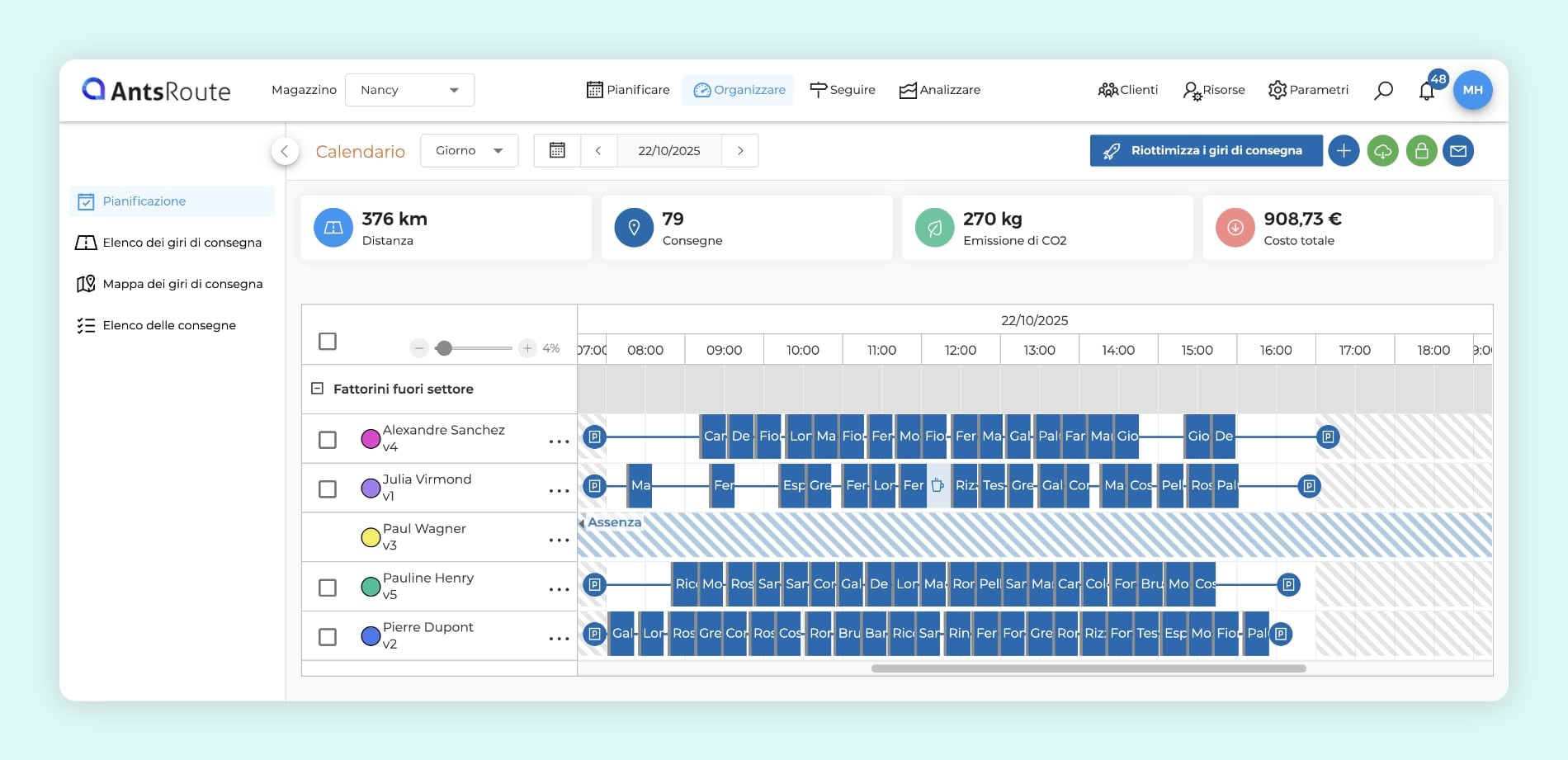 • Gestione delle urgenze: Un guasto critico può essere integrato nel giro di interventi senza compromettere l’intera giornata di lavoro.