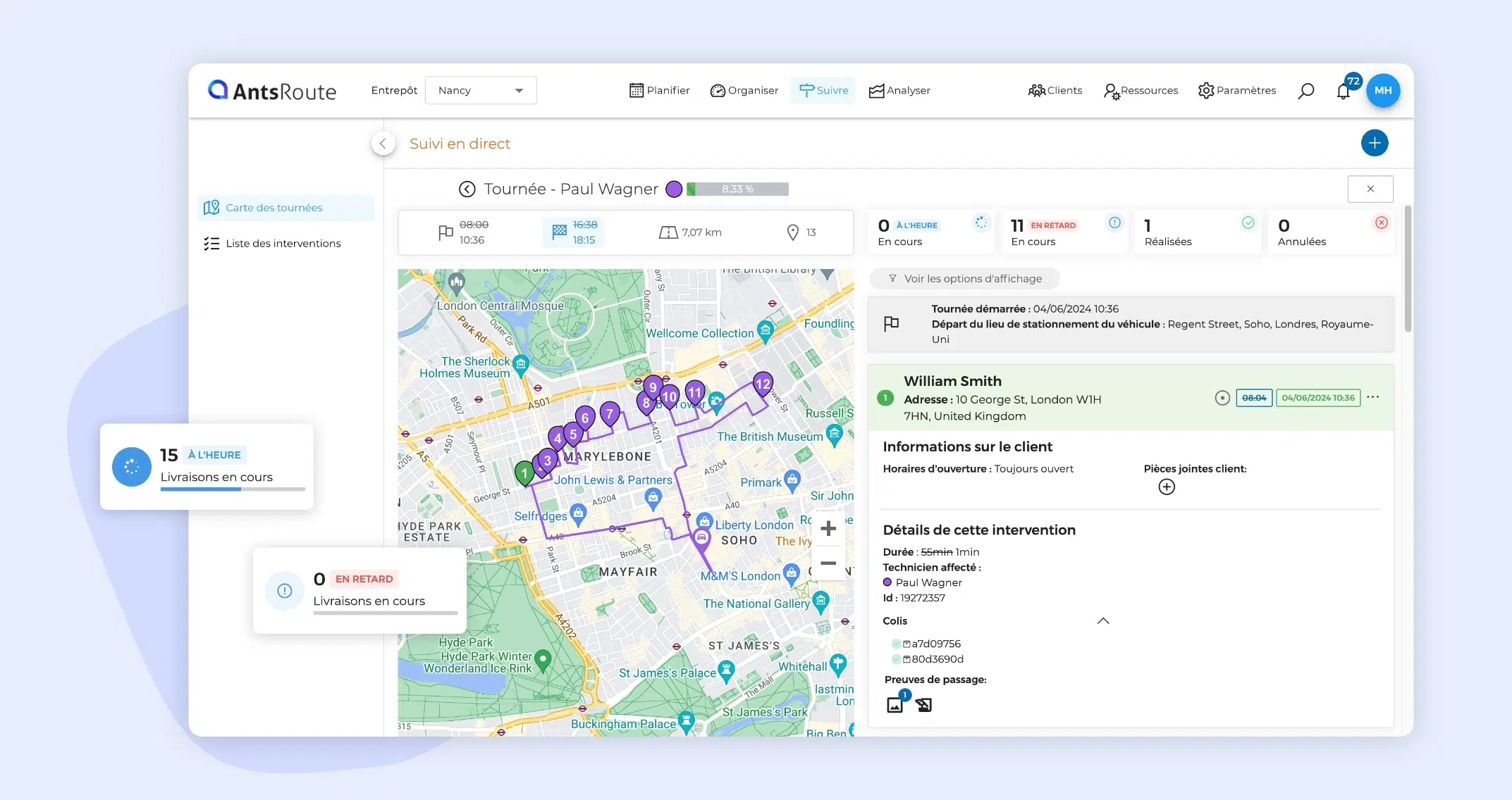 Le suivi de deux tournées en cours sur AntsRoute.